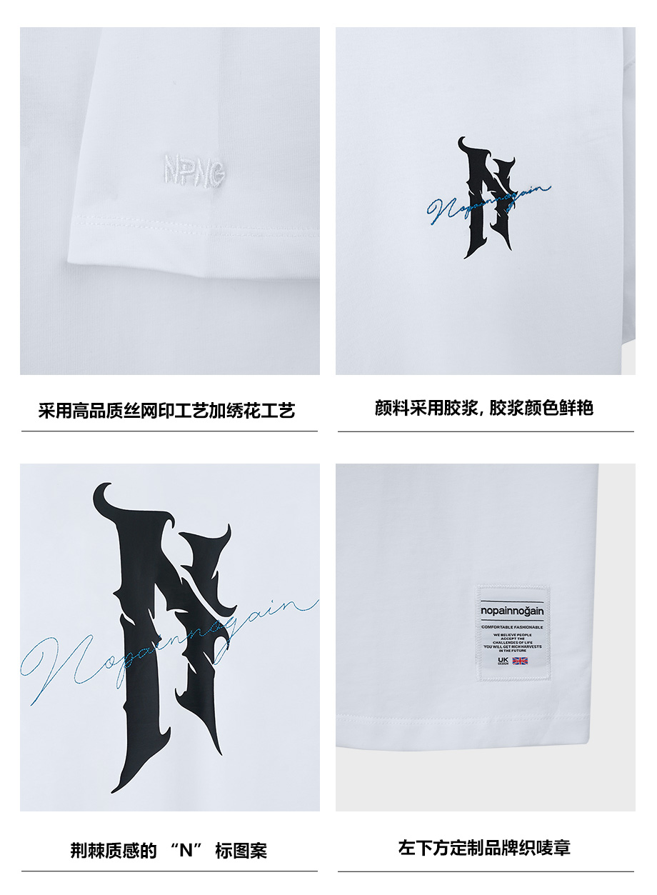 NPNG荊棘"N"標純棉刺繡短袖T恤